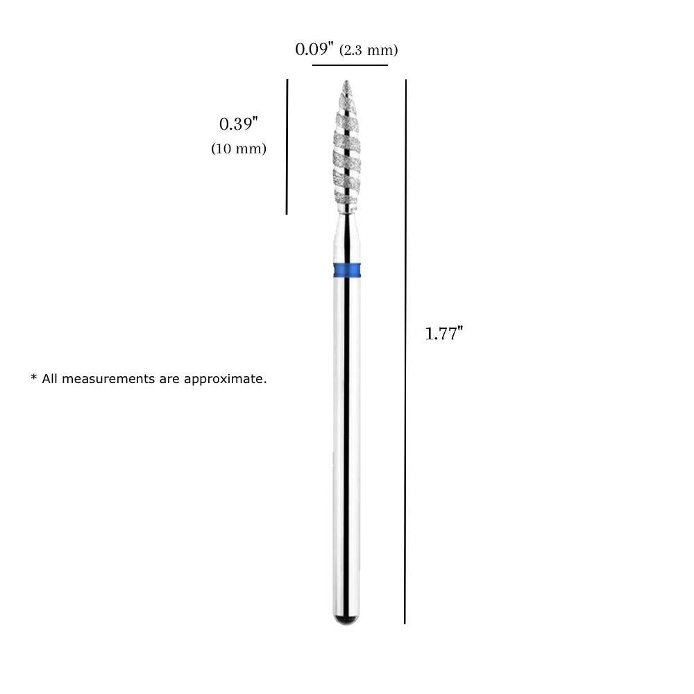 This diamond flame tornado bit is designed for removing cuticles, callous, cracked hard skin and polishing. Uneven diamond particles make it effective to cut dead skin, no damage to natural nail bed. Diamond Nail Drill Bit is used for removing, cleaning, and smoothing the cuticle area. Provides an easy, quick and safe way for cuticle preparation. It is made of a hard metal, such as steel or tungsten, and is coated with a layer of diamond dust. They are used to remove the built-up product by scratching it off.