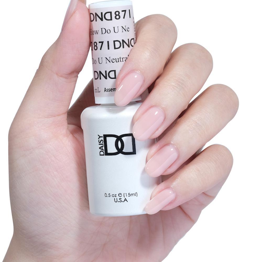 - Starting with completely clean and prepped nails, apply a single coat of DND base gel and cure for 30 seconds in a LED lamp