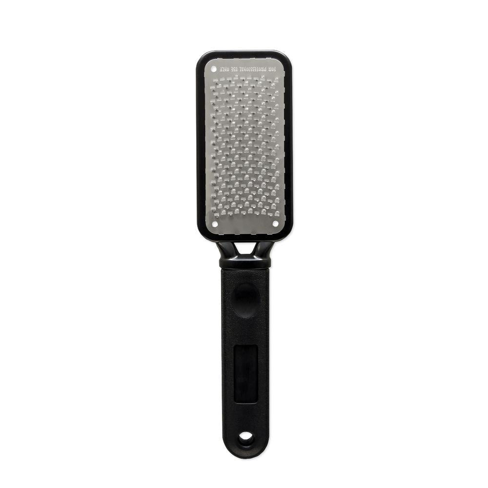 Stainless steel foot file gently exfoliates and removes corns, calluses and rough, dry skin.