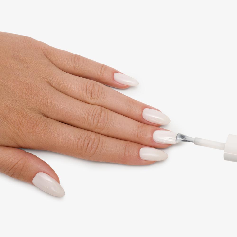 - Apply acid-free primer to the nail plate to firmly grip the base to the nail.