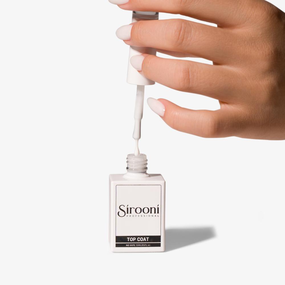 Sirooni Top Coat is a high-quality finishing coat that provides protection, shine, and durability to your manicure. It creates a strong barrier that prevents chipping and fading while giving your nails a mirror-like gloss. Sirooni Top Coat creates a strong protective barrier on the surface of the nail, preventing damage, chipping, and fading of the color coat. It gives your manicure a mirror-like gloss, making it bright and attractive. The formula of Sirooni Top Coat ensures quick drying and long-lasting durability, keeping your manicure fresh and well-groomed for a long time. This top coat is perfect for both professional salon use and home manicures.